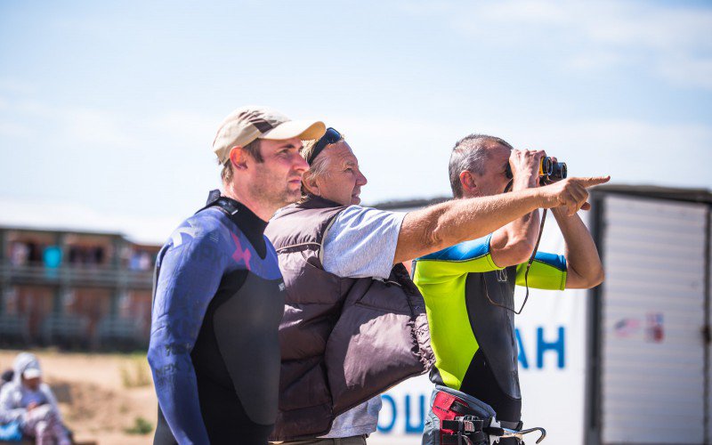 Лагерь спортсменов оживился и наполнился людьми, участники подъезжали сегодня весь день на косу. Погода стояла тёплая и ветреная, ровный юго-запад дул с силой 8-12 м/с и многие успели за этот день раскататься. В заливе были выставлены тренировочные буи, где слаломисты тренировались сегодня, зарядившись энергией Ред Була.